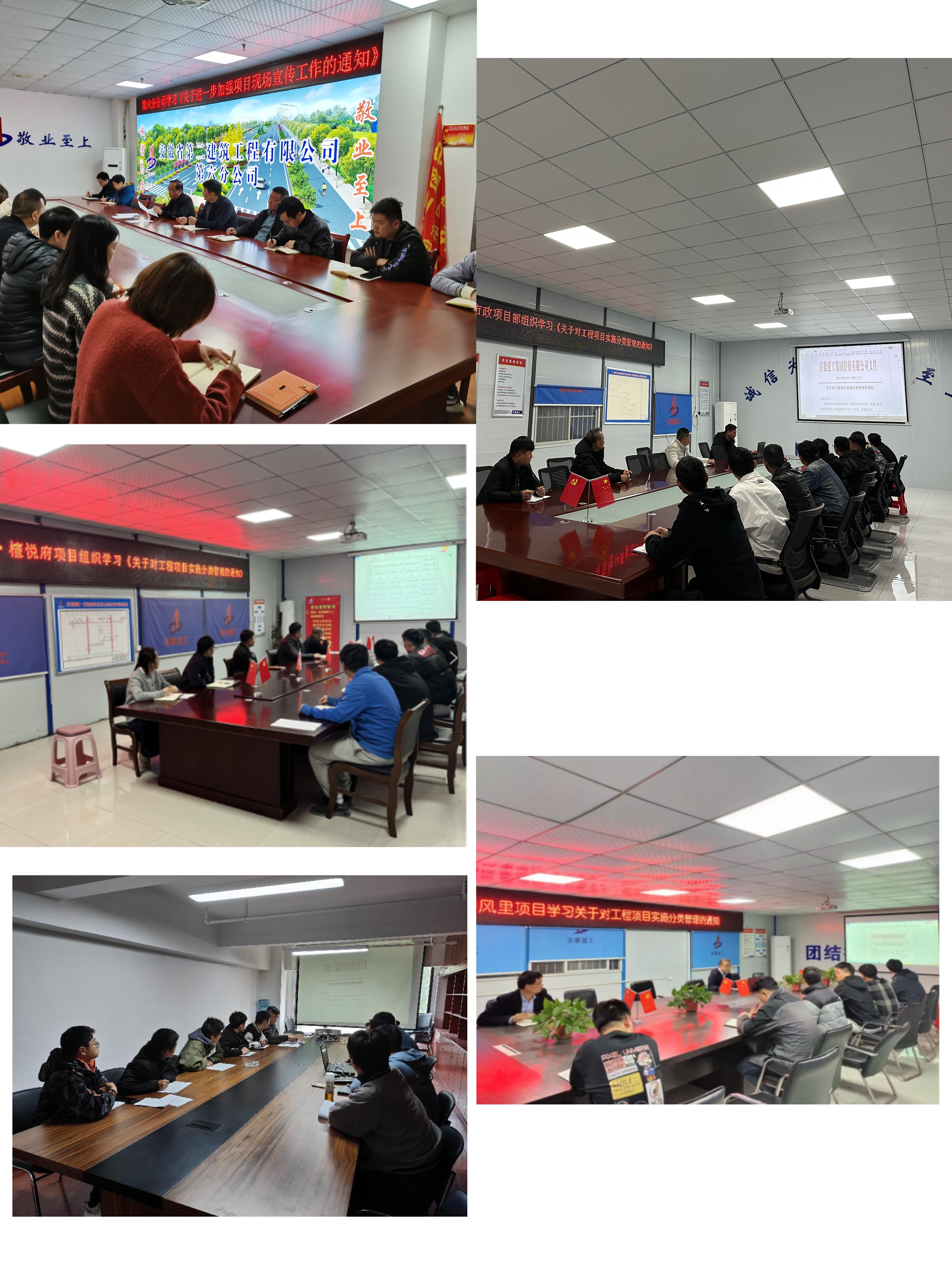 第六分公司組織分公司機(jī)關(guān)、項(xiàng)目部對(duì)建工控股工管下發(fā)的《關(guān)于對(duì)工程項(xiàng)目實(shí)施分類(lèi)管理的通知》《關(guān)于進(jìn)一步加強(qiáng)項(xiàng)目現(xiàn)場(chǎng)宣傳工作的通知 》《關(guān)于規(guī)范工程項(xiàng)目部機(jī)構(gòu)設(shè)置和項(xiàng)目管理的通知(試行)》三份文件進(jìn)行學(xué)習(xí)。