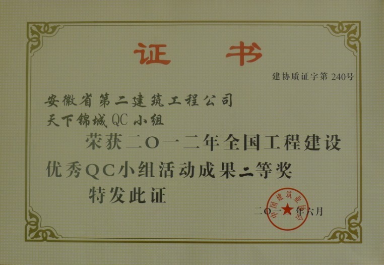近日,從2012年度全國工程建設(shè)優(yōu)秀質(zhì)量管理(QC)小組評審表彰會上傳來好消息,二公司質(zhì)量技術(shù)處QC小組《提高外墻柔性面磚施工合格率》課題從眾多項目成果中脫穎而出,經(jīng)國家工程建設(shè)質(zhì)量獎審定委員會審定,榮獲中國建筑業(yè)協(xié)會工程建設(shè)質(zhì)量管理分會“2012年度全國工程建設(shè)優(yōu)秀QC小組活動成果”二等獎,并獲頒優(yōu)秀成果證書及獎牌。該課題還榮獲安徽省建設(shè)工程優(yōu)秀QC小組一等獎。