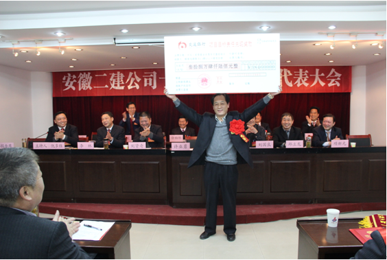 最后,黨委書記劉賢奇同志作了《轉(zhuǎn)變觀念 統(tǒng)一思想 增強信心 開拓進取 為開創(chuàng)一流安徽二建新局面而努力奮斗》的總結(jié)講話。劉書記首先對2016年公司各項工作所取得的成績給予了充分肯定,對受表彰的先進集體和個人表示了熱烈的祝賀,向辛勤工作在各個崗位上的全體二建員工致以誠摯的問候!劉書記強調(diào),二建的掘起依賴全體二建人的共同努力,為此,提出幾點意見:一是以學習黨的十八屆六中全會為主線,進一步加強理論武裝。堅持以領(lǐng)導干部為重點抓好黨委中心組學習,同時深入抓好全體黨員的經(jīng)常性學習教育活動;二是以弘揚求真務(wù)實之風為依托,進一步改進工作作風。工作要力求精益求精,做出品牌、做出特色,敢于批評和自我批評,虛心接受各方面意見,敢于沖破束縛我們手腳的各種框框和體制障礙,實現(xiàn)政治、經(jīng)濟、精神文明的協(xié)調(diào)發(fā)展。三是以建設(shè)“四好”領(lǐng)導班子為重點,進一步加強領(lǐng)導班子和黨員隊伍建設(shè)。堅持把企業(yè)經(jīng)營業(yè)績考核結(jié)果作為評價開展“四好”班子建設(shè)的重要依據(jù),堅持定量考核與定性評價相結(jié)合,努力達到上級黨委、領(lǐng)導班子自身和職工群眾“三滿意”的效果。四是以增強企業(yè)凝聚力、向心力為目標,進一步做好職工思想政治工作和企業(yè)文化建設(shè)。五是以弘揚企業(yè)廉潔文化的抓手,進一步穩(wěn)固企業(yè)反腐倡廉體系。要求公司各級管理人員要貫徹落實好“一崗雙責”,修訂完善黨內(nèi)各項考核制度,形成用制度管人、用制度管事、用制度管權(quán)的工作格局。六是以創(chuàng)建和諧企業(yè)為載體,進一步做好群團工作。按照黨建帶群團組織建設(shè)的要求,按照總攬全局、協(xié)調(diào)各方的原則,切實發(fā)揮好公司黨委領(lǐng)導核心和政治核心作用。讓全體二建人在集團和公司兩級黨政班子的堅強領(lǐng)導下,上下同心,精誠團結(jié),以高度的時代使命感和政治責任感,拼博進取,為開創(chuàng)安徽二建改革發(fā)展新局面、實現(xiàn)安徽二建宏偉目標而不懈奮斗!