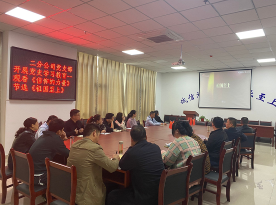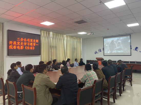 為認真貫徹落實習近平總書記在中央黨史學習教育動員大會上的重要講話精神,進一步深入貫徹公司黨委關于開展黨史學習教育的文件精神。4月16日,二分公司黨支部開展黨史學習教育活動,組織黨員和干部職工觀看電影《長征》及紀錄片《信仰的力量》節選《祖國至上》。