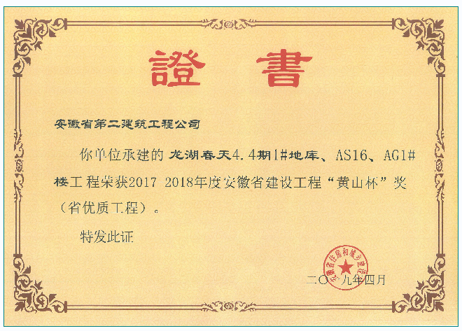黃山杯(龍湖春天4.4期1#地庫、AS16、AG1#樓)