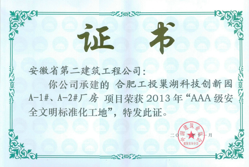 AAA級安全文明示范工地(合肥工投巢湖科技創新園廠房)