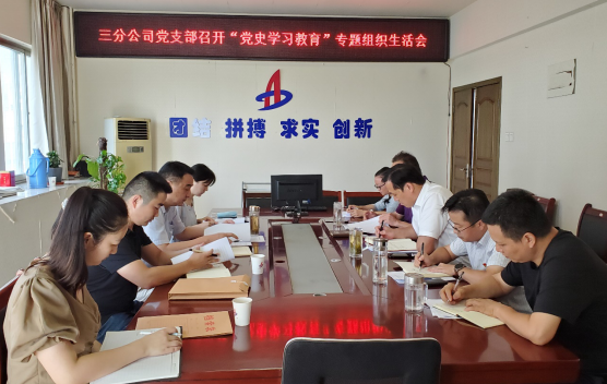 8月30日上午,三分公司黨支部召開黨史學習教育專題組織生活會,會議由支部書記陳習武主持,公司紀委書記沈壯、黨委工作部、紀檢監察室、人力資源部相關人員到會指導。