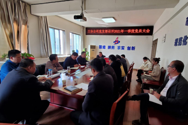 2月20日上午,三分公司黨支部在會議室召開黨員大會,分公司黨員、發展對象、入黨積極分子共計18人參加會議,會議由黨支部書記陳習武主持。