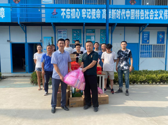 驕陽似火,酷暑難當。隨著聒噪的蟬鳴,又迎來了今年的高溫季節。自7月中旬,公司啟動“關愛一線、夏送清涼”慰問一線活動以來,六分公司領導班子先后走進文一·春風里、文一·錦門繁華里等項目部開展慰問活動。慰問期間,每到一處,不僅為一線職工送上礦泉水、毛巾、花露水、綠豆、藿香正氣水、防暑藥品等慰問品,還深入到項目施工現場,與職工親切交談,要求項目部做好高溫防暑工作,靈活安排作息時間,落實高溫天氣作業安全防范措施,切實做好當前防暑降溫工作,防止發生中暑事件,確保人身安全。