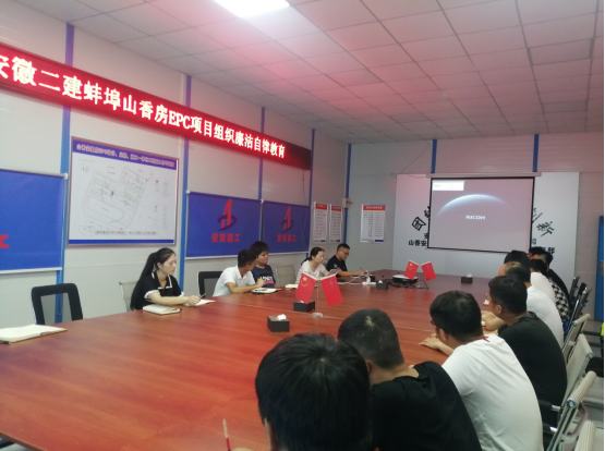 8月11日中午分公司黨支部書記倪海霞蚌埠山香安置房EPC項目部開展廉潔從業(yè)教育,強調(diào)作風(fēng)建設(shè)的重要性,組織全體職工學(xué)習(xí)《工程建設(shè)領(lǐng)域廉潔風(fēng)險防控清單》。