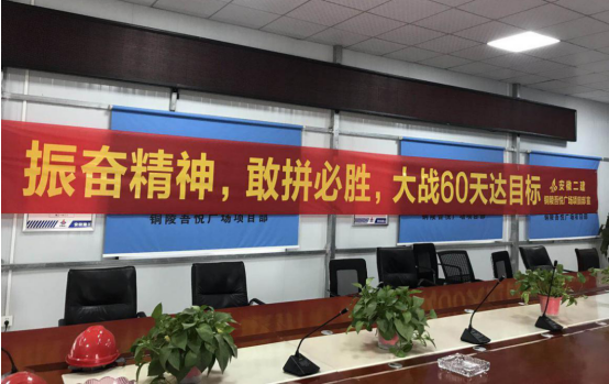 銅陵吾悅廣場項(xiàng)目計(jì)劃完成競賽產(chǎn)值6000萬,為保證該目標(biāo)的完成,項(xiàng)目負(fù)責(zé)人與勞務(wù)班組簽訂勞動(dòng)競賽責(zé)任狀,對表現(xiàn)優(yōu)異的班組予以獎(jiǎng)勵(lì),現(xiàn)場懸掛各類條幅宣傳大干60天勞動(dòng)競賽精神。
