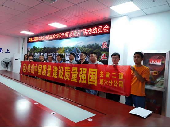 為認(rèn)真落實(shí)安徽建工集團(tuán)股份有限公司關(guān)于開展2019年“質(zhì)量月”活動(dòng)的通知,9月3日,第六分公司召開2019年“質(zhì)量月”活動(dòng)專題會(huì)進(jìn)行宣貫,組織職工進(jìn)行橫幅簽名活動(dòng),以“共創(chuàng)中國(guó)質(zhì)量 建設(shè)質(zhì)量強(qiáng)國(guó)”為主題,大力營(yíng)造“人人重視高質(zhì)量,人人創(chuàng)造高質(zhì)量,人人享受高質(zhì)量”的良好氛圍,進(jìn)一步規(guī)范質(zhì)量安全行為,提高質(zhì)量安全管理水平,全面提升項(xiàng)目管理水平,要求項(xiàng)目部按照“質(zhì)量月”活動(dòng)內(nèi)容,結(jié)合項(xiàng)目實(shí)際,精心安排、周密部署,以“質(zhì)量月”活動(dòng)為契機(jī),加大項(xiàng)目質(zhì)量宣傳力度,進(jìn)一步提高全員質(zhì)量意識(shí),開展質(zhì)量示范創(chuàng)建,創(chuàng)建公司質(zhì)量品牌,牢固樹立全心全意為用戶提供優(yōu)質(zhì)服務(wù)的安徽建工一流企業(yè)現(xiàn)象。