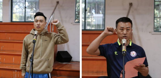 運(yùn)動員代表端建軍和裁判員代表高峰分別進(jìn)行比賽宣誓。