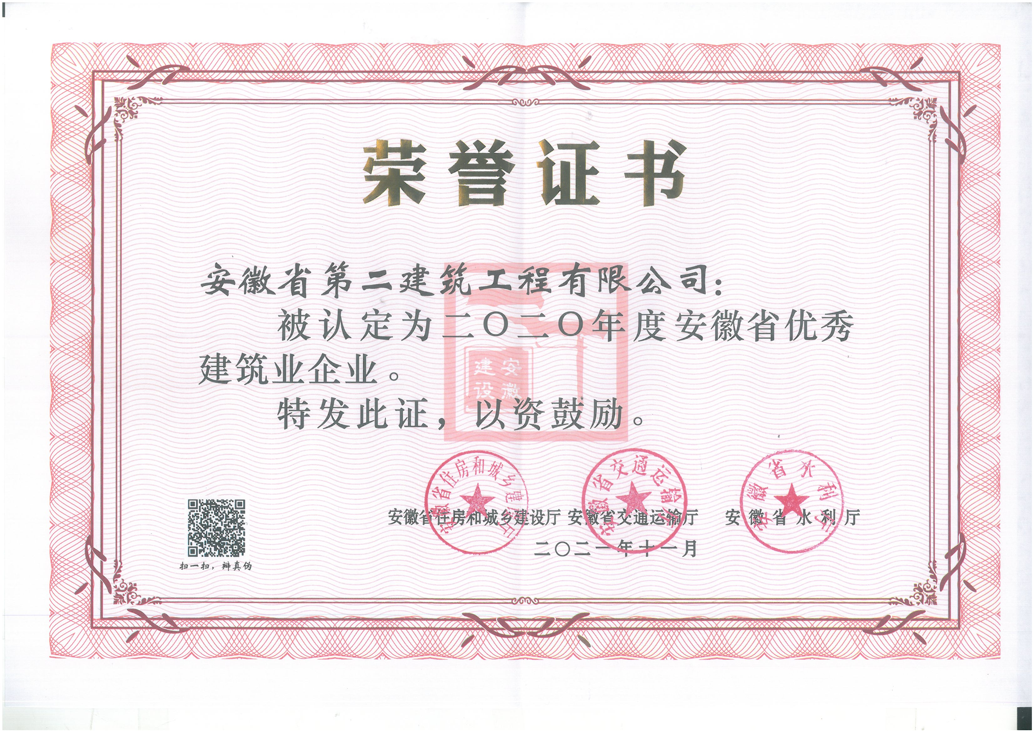2020年度安徽省優秀建筑業企業